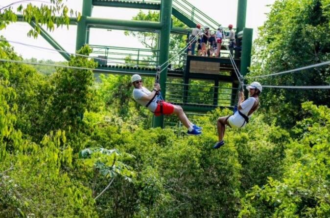 Tour Full Adventure the only theme park in Punta Cana, where you will have the opportunity to ride a thoroughbred horse and drive a Polaris buggy through a coffee plantation and bathe in the Anamuya River. Visit the plantations while meeting the local people and see how they live during this day of active and cultural experiences in the middle of the island's natural environment. Enjoy the fastest zip lines in the Caribbean area, 5 lines with automatic brake, including the longest in the Caribbean, fast live jump experience from 20 meters and enjoy the first chairlift in the Dominican Republic. Finish it all off with an excellent local meal in the middle of the Anamuya jungle.