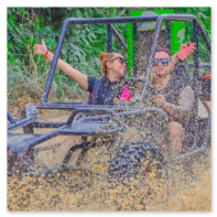 Our excursion begins with pick up at the hotel lobby in Punta Cana. Upon arrival, all guests are welcomed at the ranch, with W/C, lockers, restaurant and bar, all in a unique environment. After check-in, our first activity will be in our all-terrain buggy, to travel our magical trails on a 1-hour adventure in the middle of the jungle.
