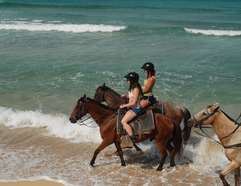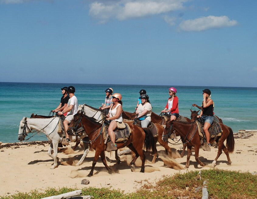 You will experience typical Dominican life in the country from the back of your friendly companion and you will see a school and a grocery store. Our professional guides will prepare the horses for a swim in the beautiful waters of Macao Beach. It is a unique experience to swim with a horse in the sea. Weather permitting, you can take another gallop along the beach and then, we will ride back to the ranch.