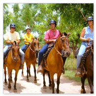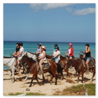 Stop 1: Awaken your spirit riding on horseback along an idyllic deserted beach with soft sand and crystal clear water, away from Punta cana Hotel and town. The ride is suitable for beginners and experienced riders and your tour will start with pickup from your hotel by safari truck. After a short drive you will arrive at the beach where the horses are waiting saddled up and ready to go. Your friendly guide will help you with instructions and introduce your horse to you and then comes this magical moment that you have been waiting for. ...