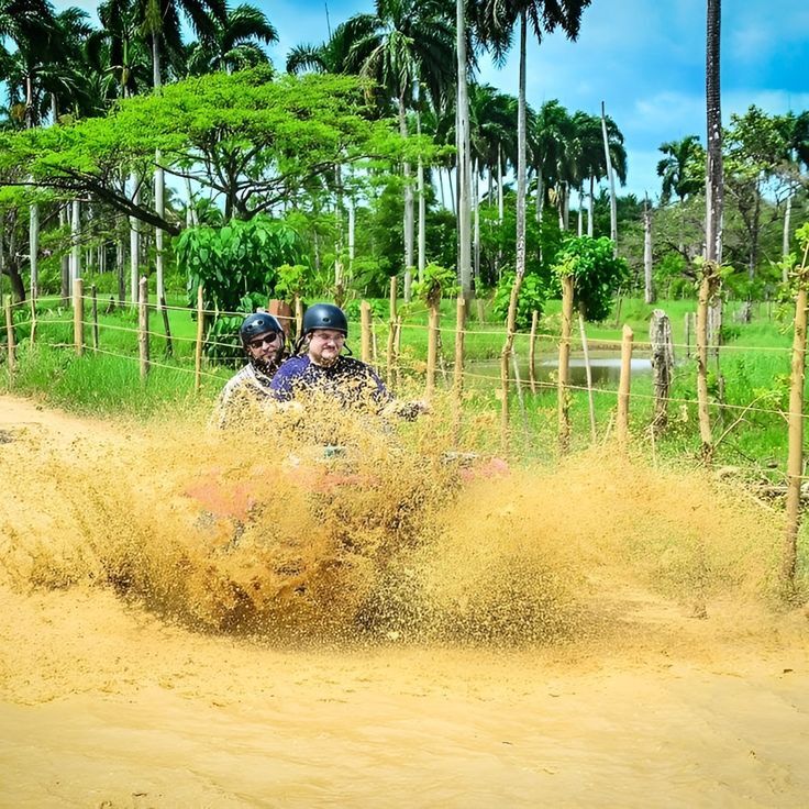 Getting dirty in Punta Cana" on a guided excursion driving a Side by Side ATV. We travel through the most impressive scenic landscapes of Punta Cana on hundreds of kilometers of undisturbed natural forest trails, navigating through lands and plantations and sometimes muddy, also a bath in fresh waters of the Taino cave departing from the Macao Ranch